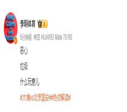 媒体人陆洋表示,“真要帮香港同胞创个纪录么?貌似亚洲赛场香港球队主力打主力还没在咱身上开过张,今天这半小时各种猛送。”博主李明体育更是表示“恶心、垃圾”。