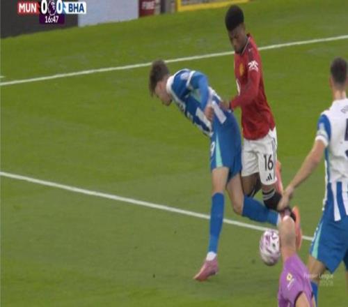 雷速体育10月26日报道宣称 英超第9轮,曼联暂时2-0领先布莱顿。比赛第15分钟,阿马德突入禁区内被德库耶佩放倒,裁判并未做出判罚。