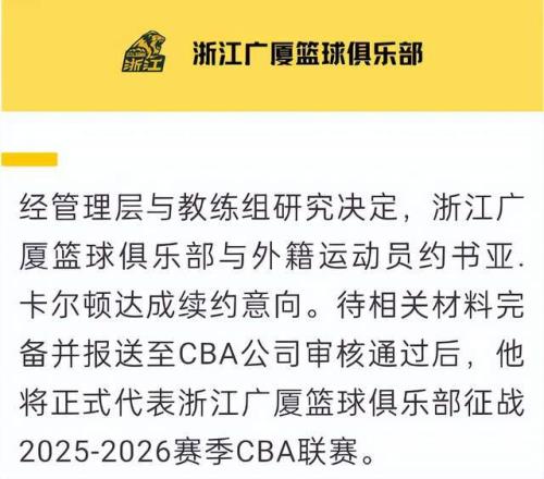上一篇: 卫冕冠军广厦官宣:续约总冠军外援卡尔顿新季助力冲2连冠