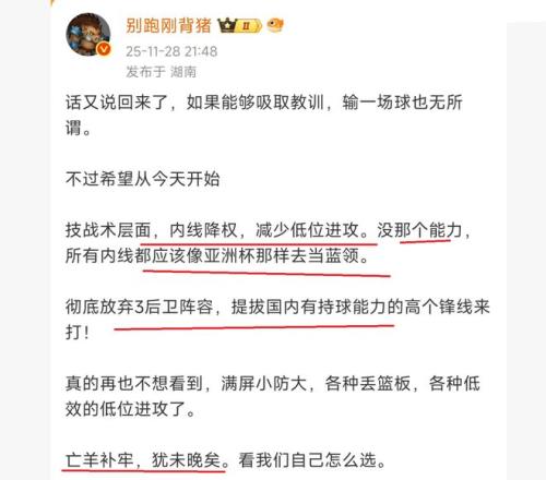 那么,中国男篮为何会输给实力不如自己的韩国队呢?对于这个问题,CBA名记“别跑刚背猪”在赛后也进行了点评,他认为中国男篮输球主要责任是主教练郭士强,是他太信赖周琦的个人进攻能力+用人战术错误,从而导致球队输球。