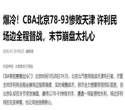 1月28日的京津德比中,拥有豪华阵容的北京队爆冷输给了天津队。